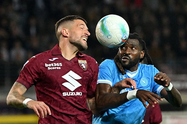 Torino's Cristiano Biraghi in action with Napoli's Frank Anguissa | Image Credits: Reuters