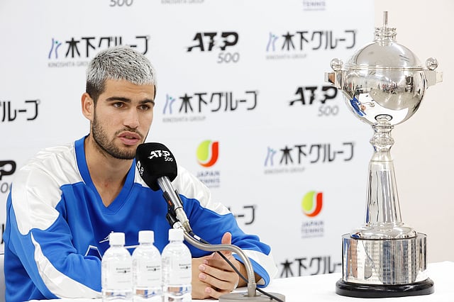 Carlos Alcaraz talks to the press after his win against Taylor Fritz in Japan Open 2025 Final | Image Credits: IMAGO/ ZUMA Press Wire