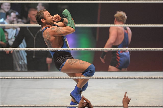 Santino Marella celebrates after beating Jack Swagger in a house show | Image Credits : IMAGO / Photo News